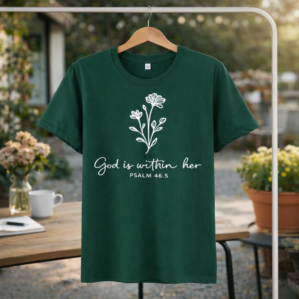 God Is Within Her Floral T-Shirt, Psalm 46:5 Christian Tee, Faith Apparel