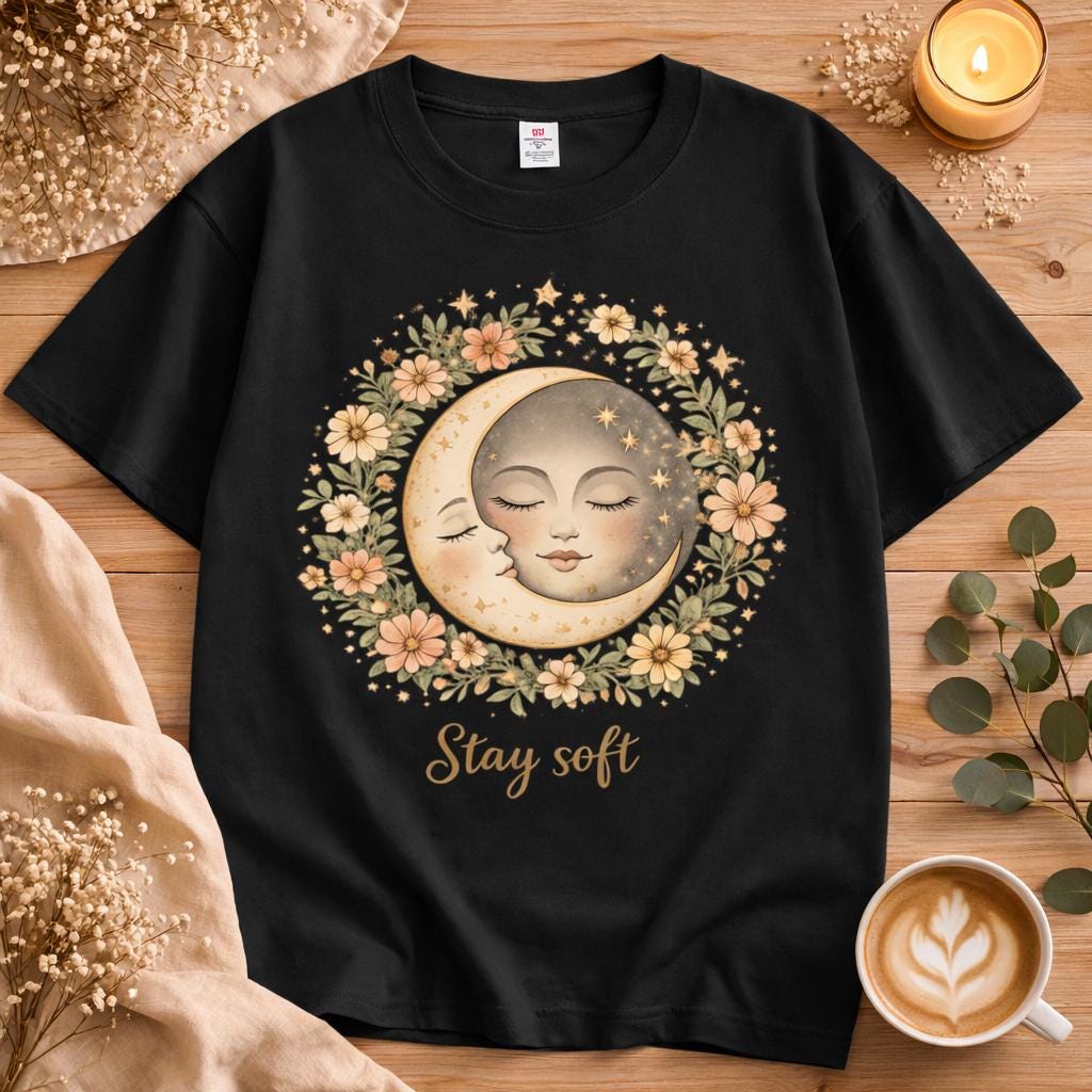 Stay Soft Shirt, Boho Moon T-Shirt, Floral Moon Graphic Tee, Celestial Outfit, Vintage Style